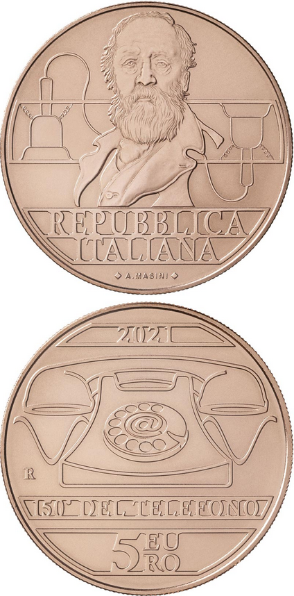 Pièce de 5 Euro en Cuivre de l'Italie année 2021, qualité