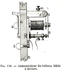 les pointes de deux vis u, v', l'armature A que le ressort antagoniste