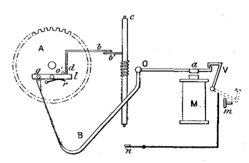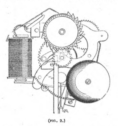 Une moitié de cette roue, dentée, transmettait, en tournant,