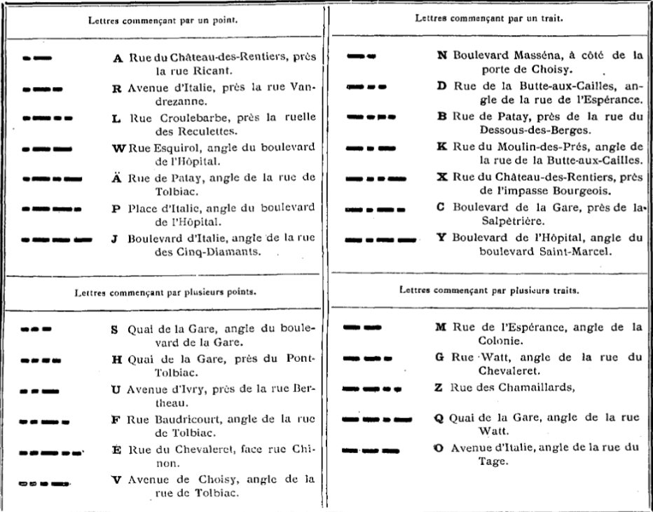 Un ensemble spécifique de signaux Morse était attribué