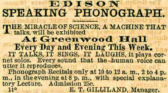 Daily Gazette annonçant une exposition du phonographe à