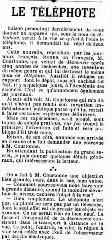 en 1909, le téléphote de Rignoux semble avoir bénéficié