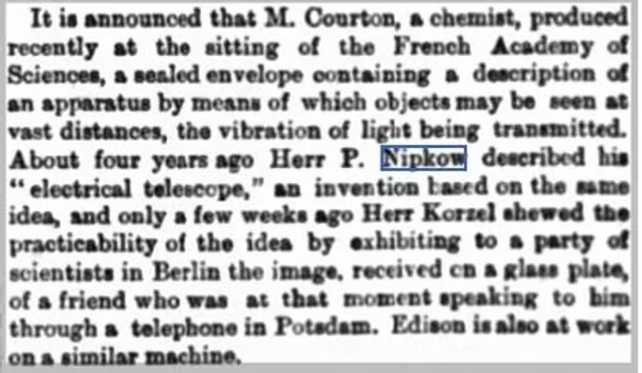 sera par la suite utilisé par John Logie Baird ainsi que par Bélin