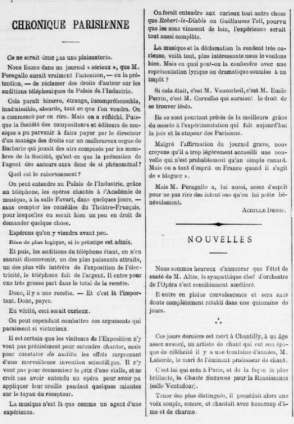 31 Mars 1877 imagine déjà le théatrophone,