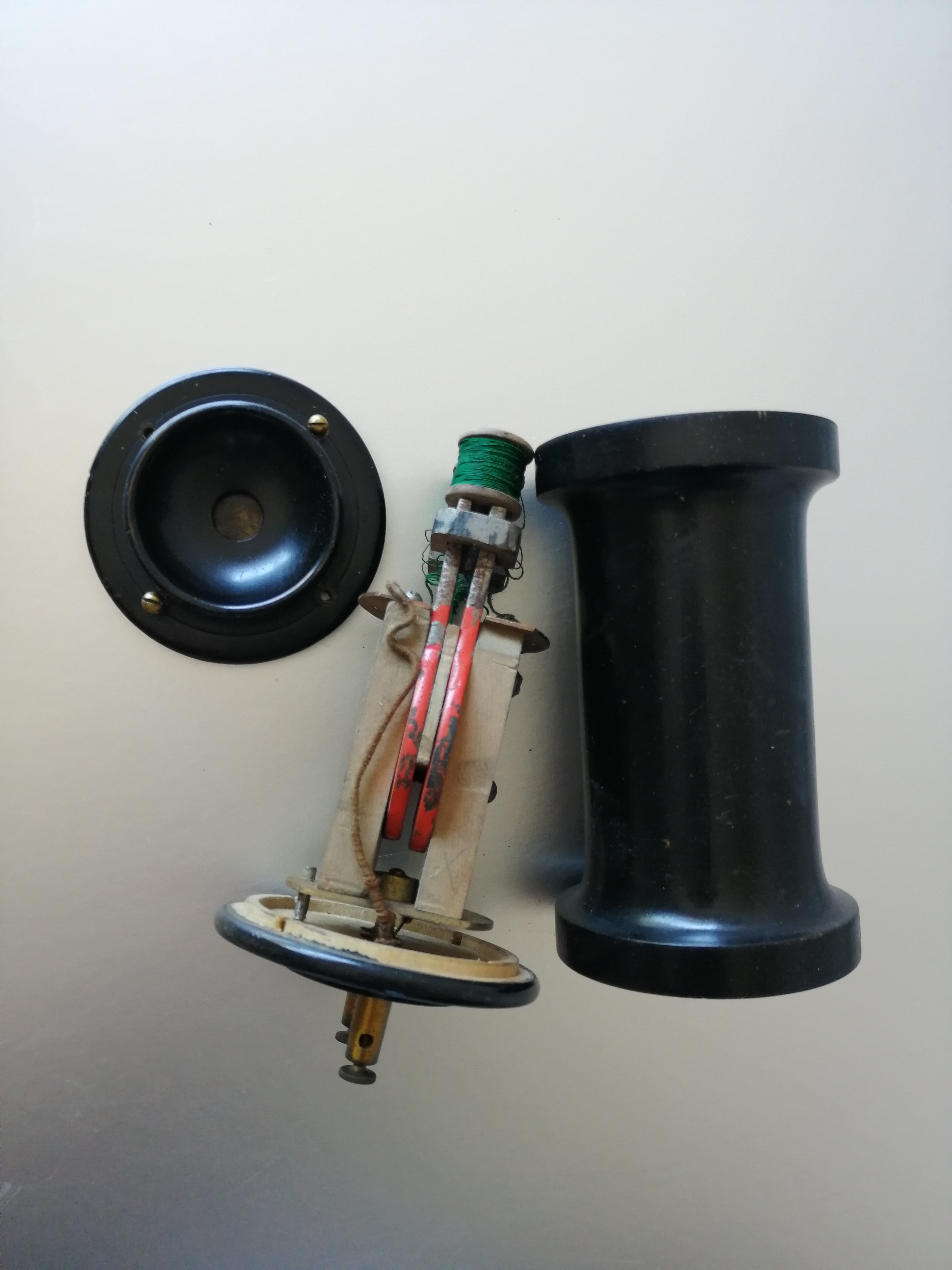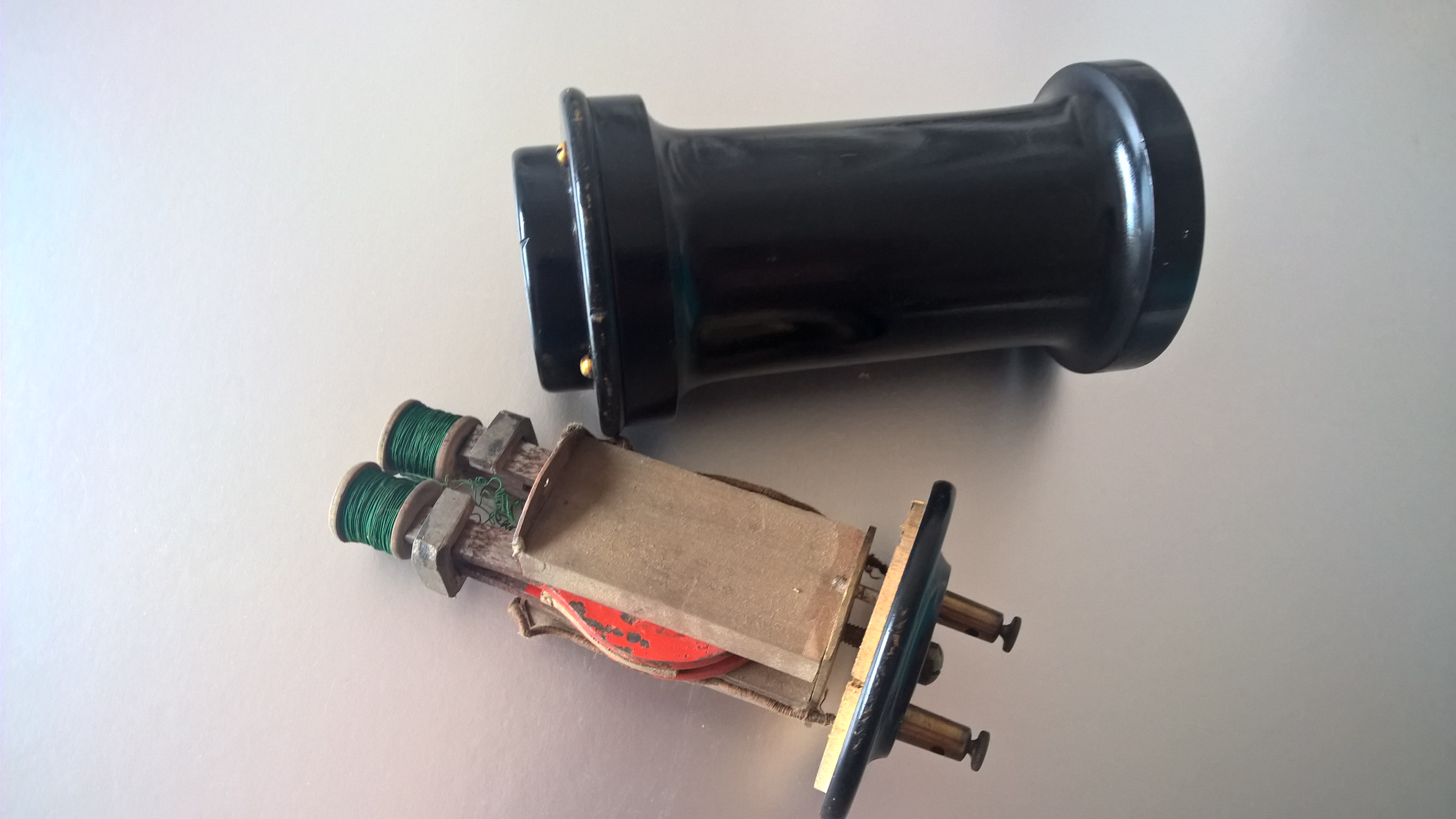bobine b, en carton, bois de buis ou caoutchouc durci, entouré