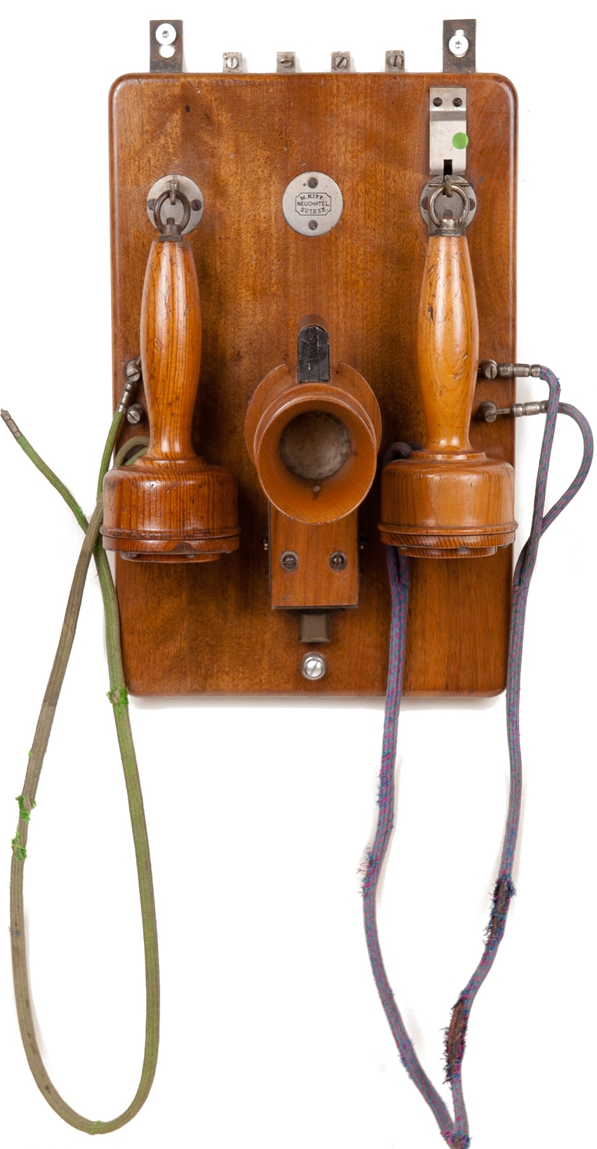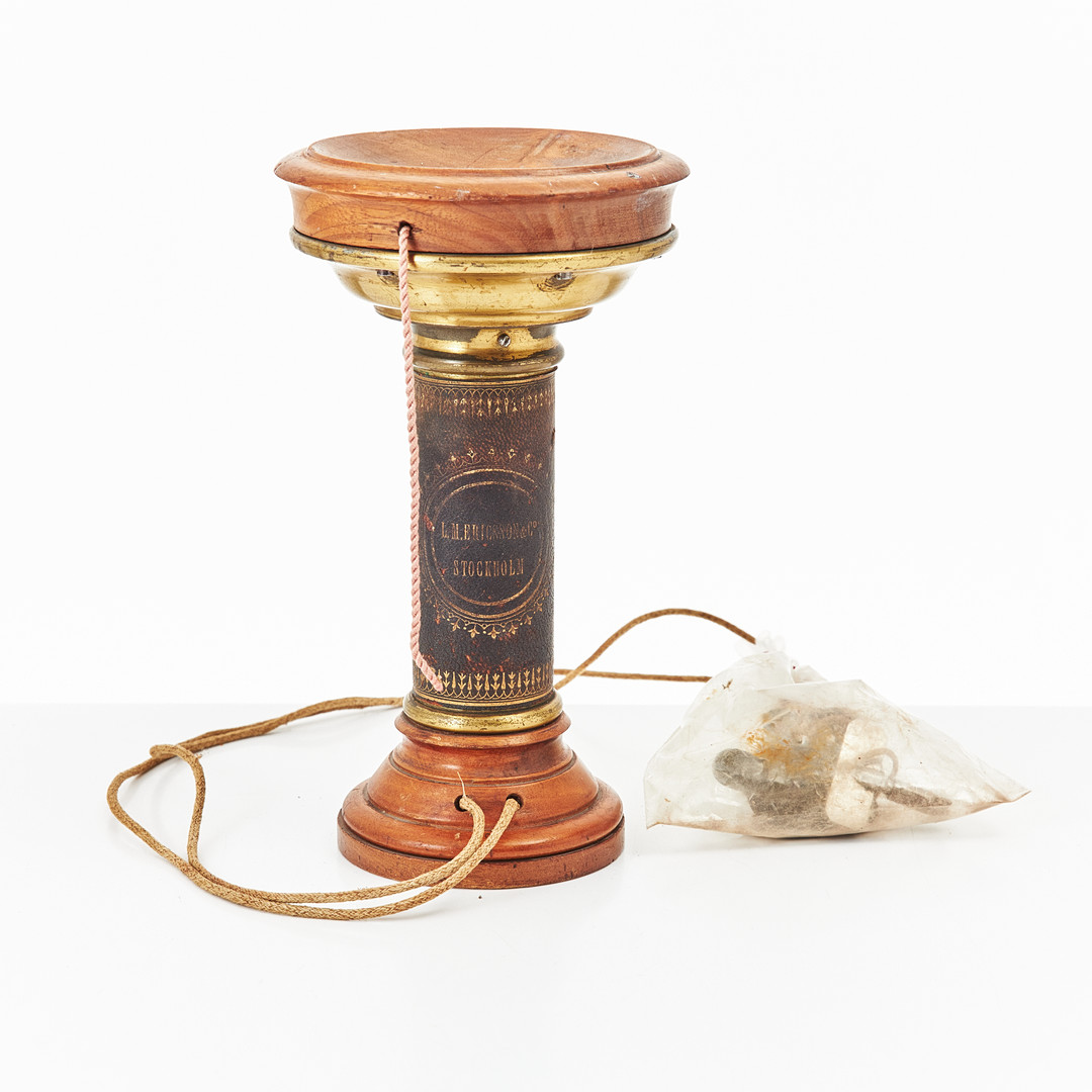 sur le dessous, hauteur 19 cm. Ce téléphone a probablement