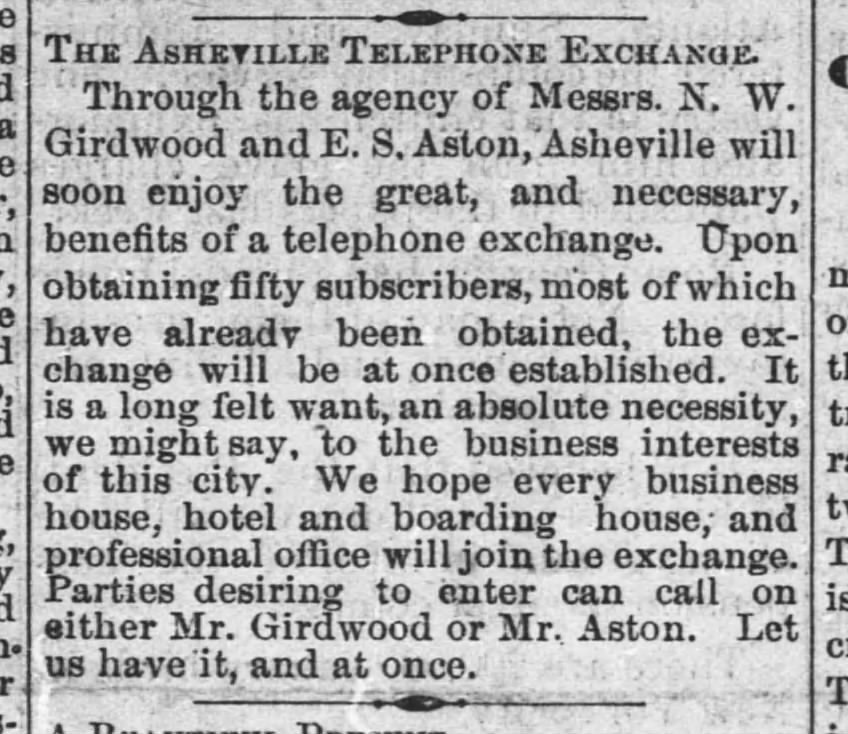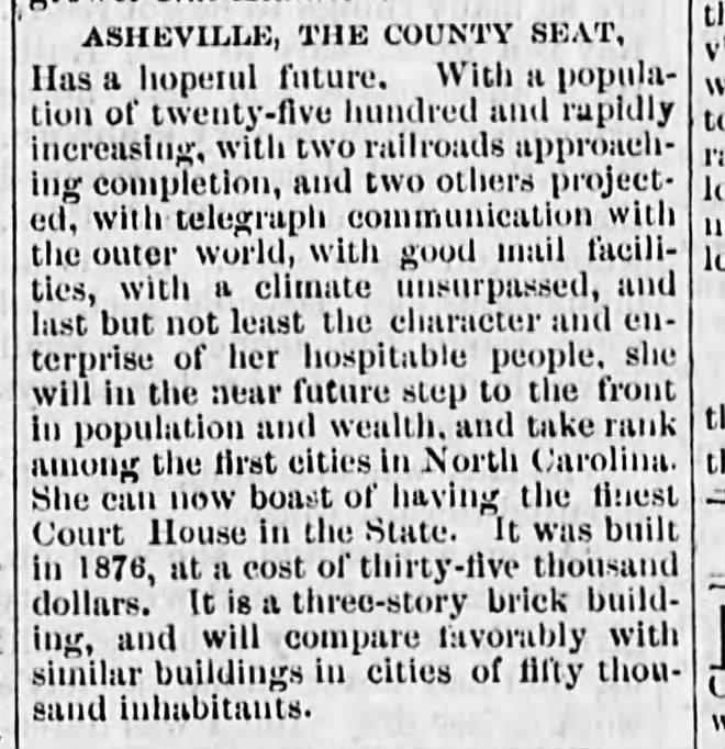 Asheville Weekly Citizen , 1er novembre 1884