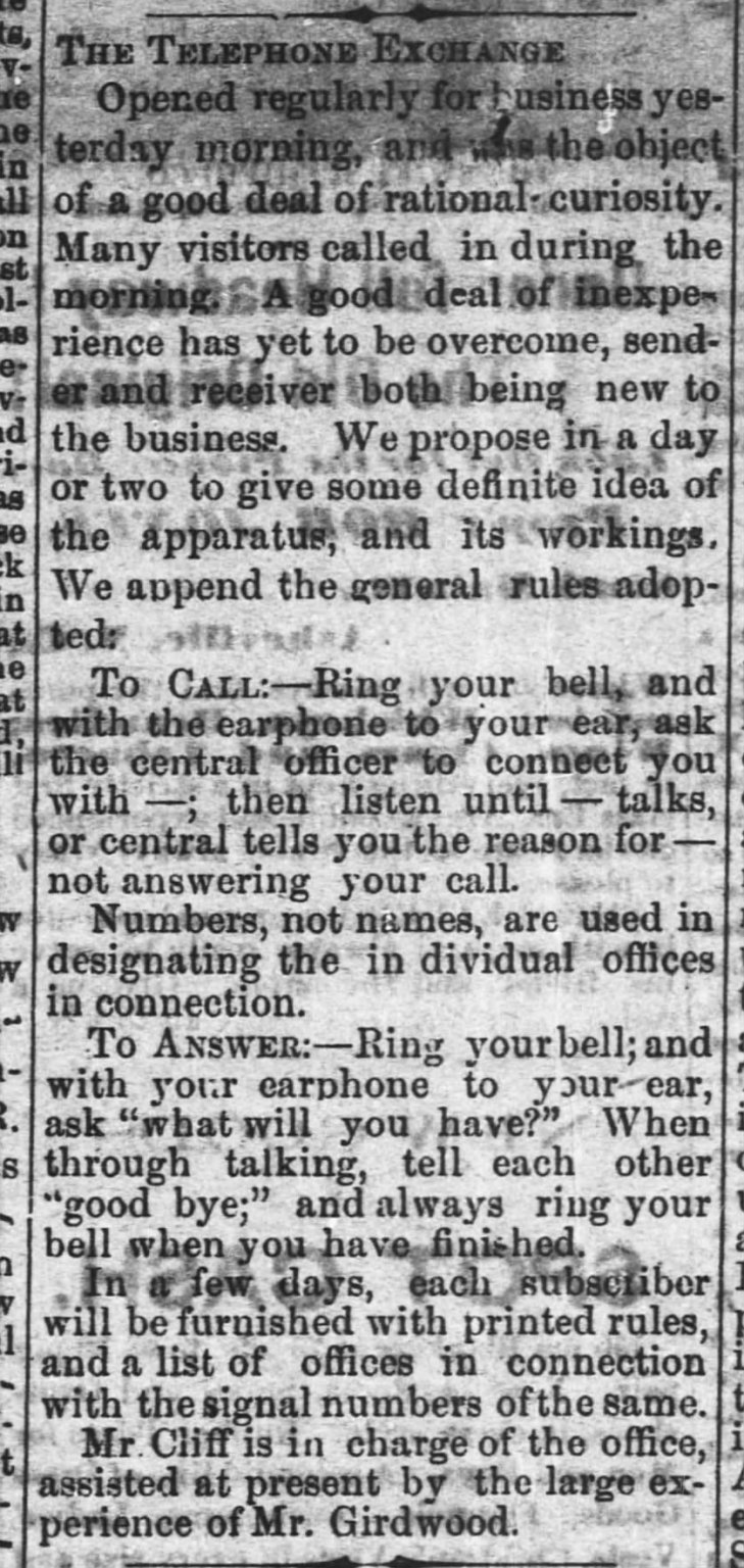 Fin 1879, les numéros de téléphone à