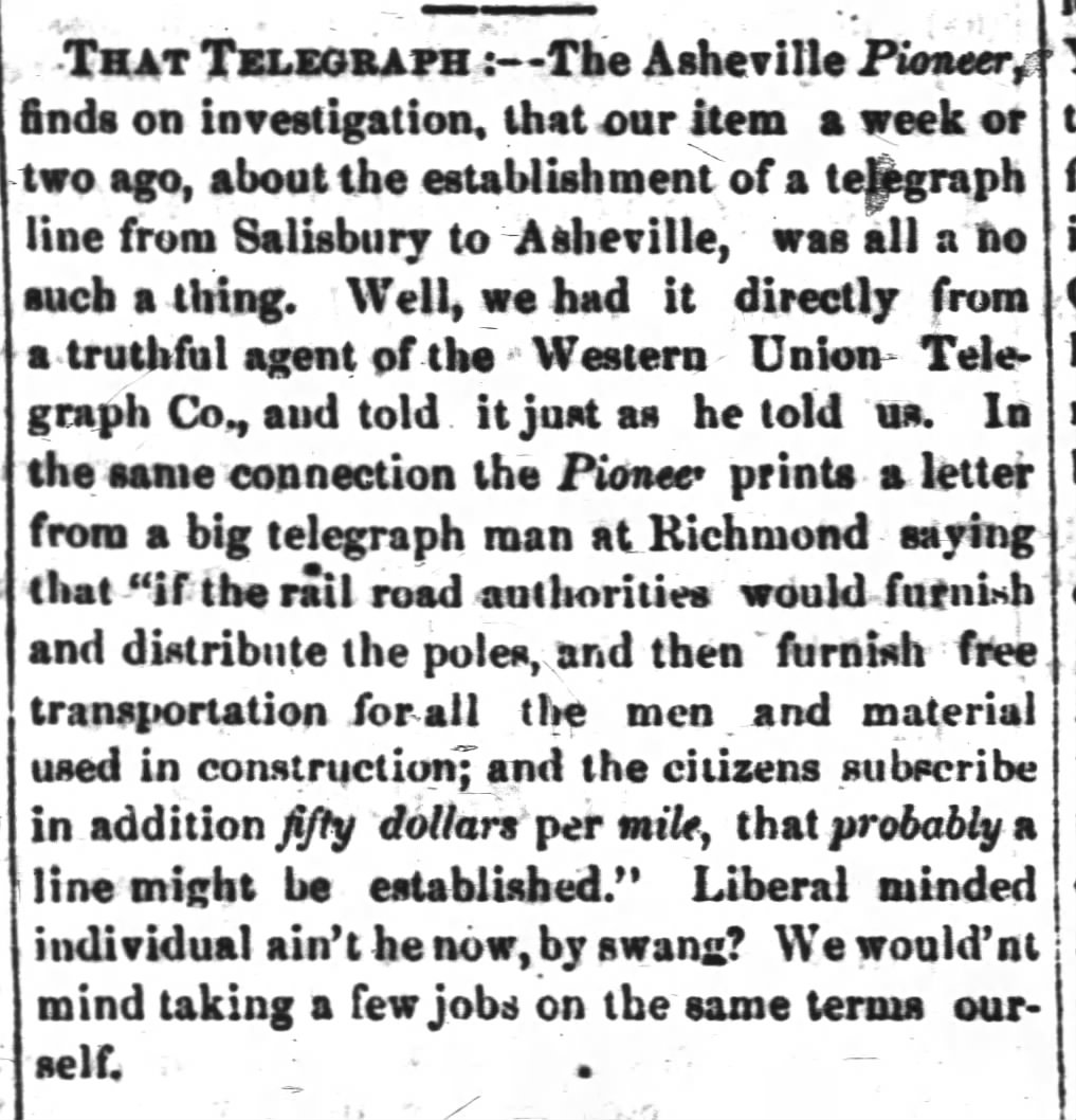 télégraphistes de la région d'Asheville figuraient