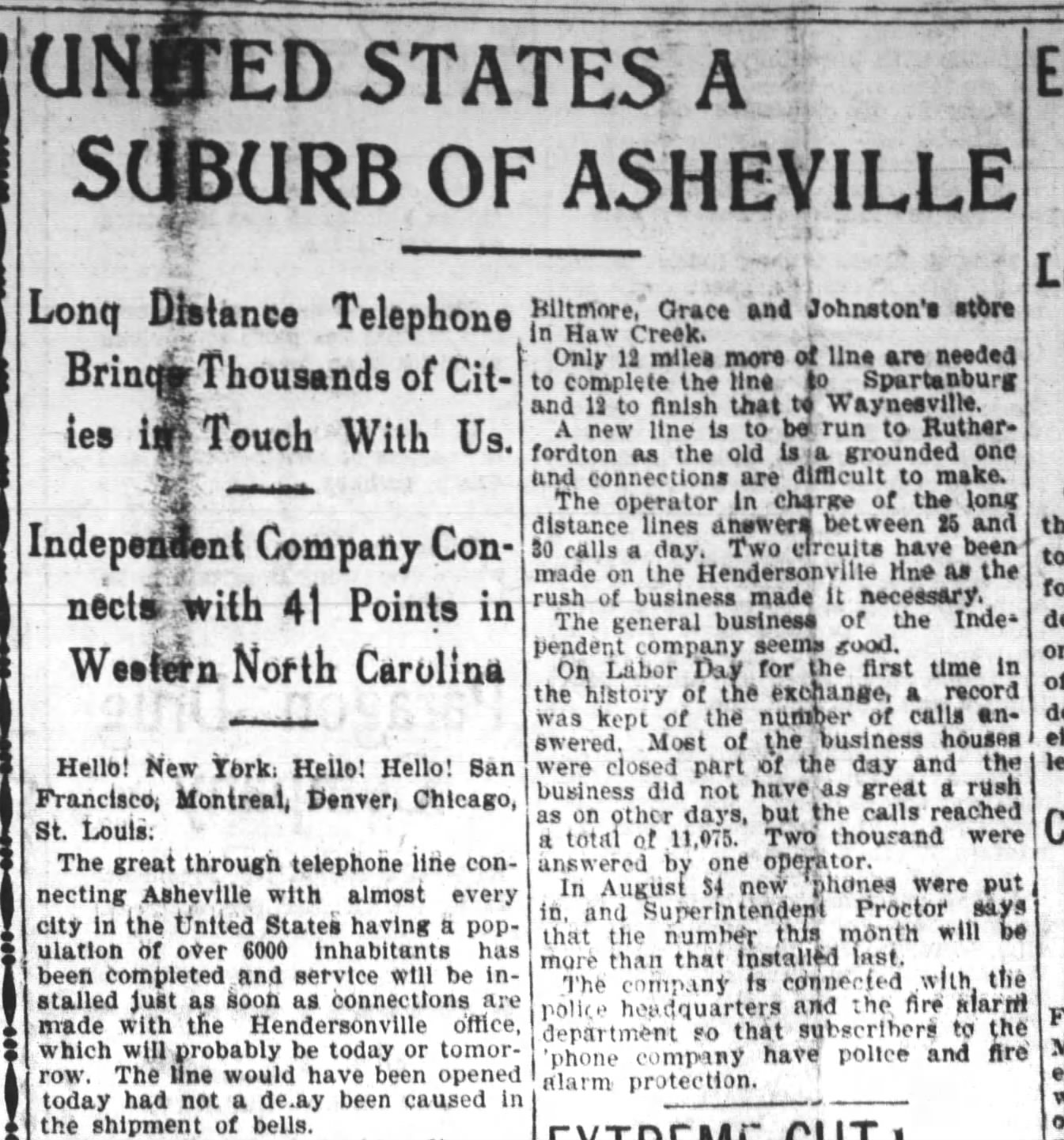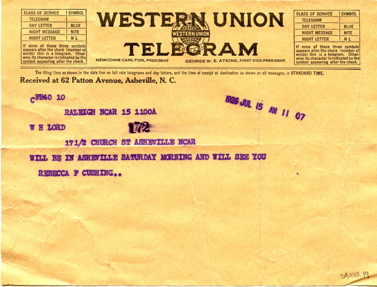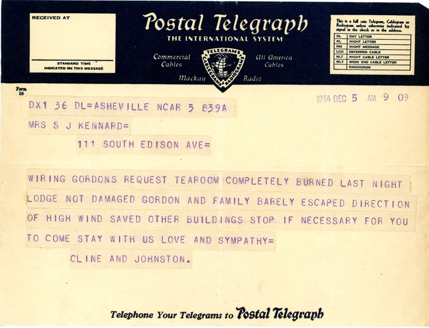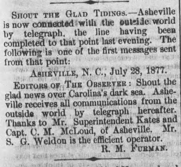 À Asheville, le bureau télégraphique