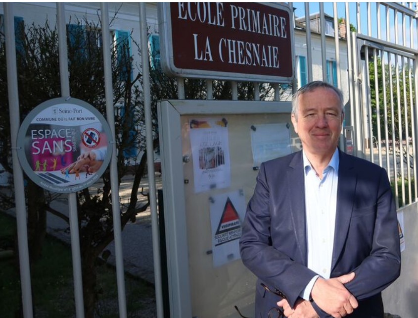 Le maire de Seine-Port, Vincent Paul-Petit ici devant la grille de l'école