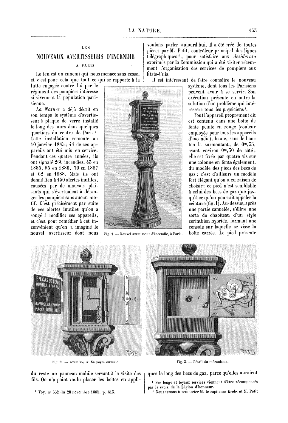 1893 - Les nouveaux avertisseurs d'incendie - LA NATURE par