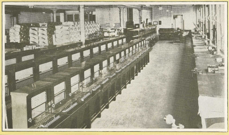 Arrvée des fils au centre téléphonique d'Anvers. Opératrice