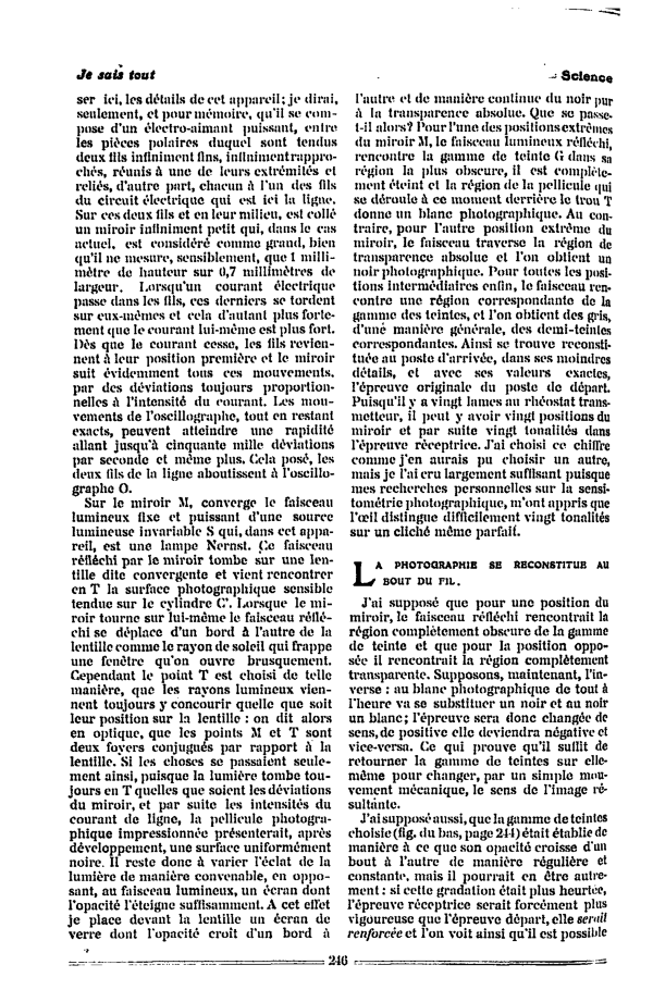 temps négligeable et par voies purement physiques : le télégraphoscope,