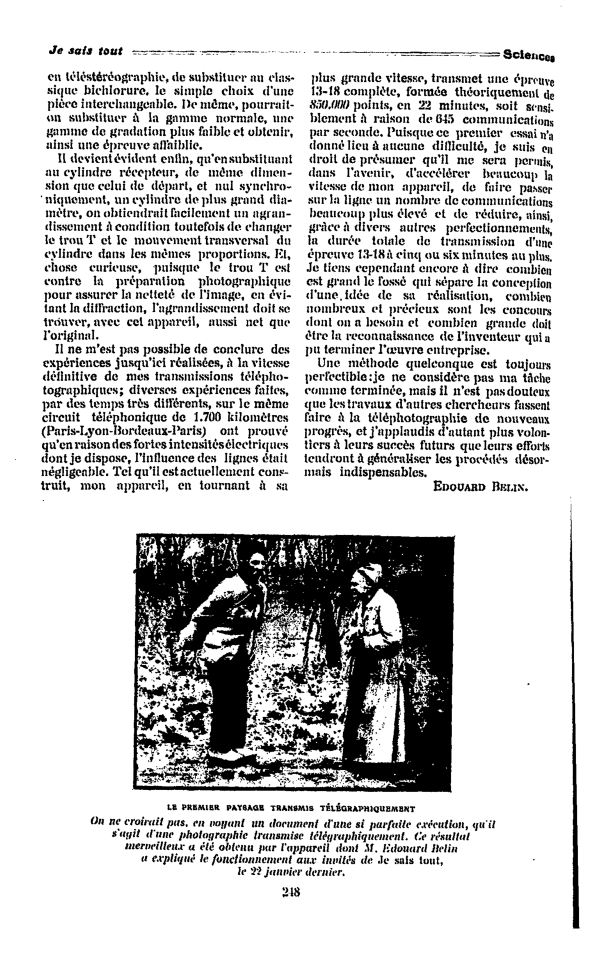 Bélinographe, synonyme, disait-on chez les photo-reporters