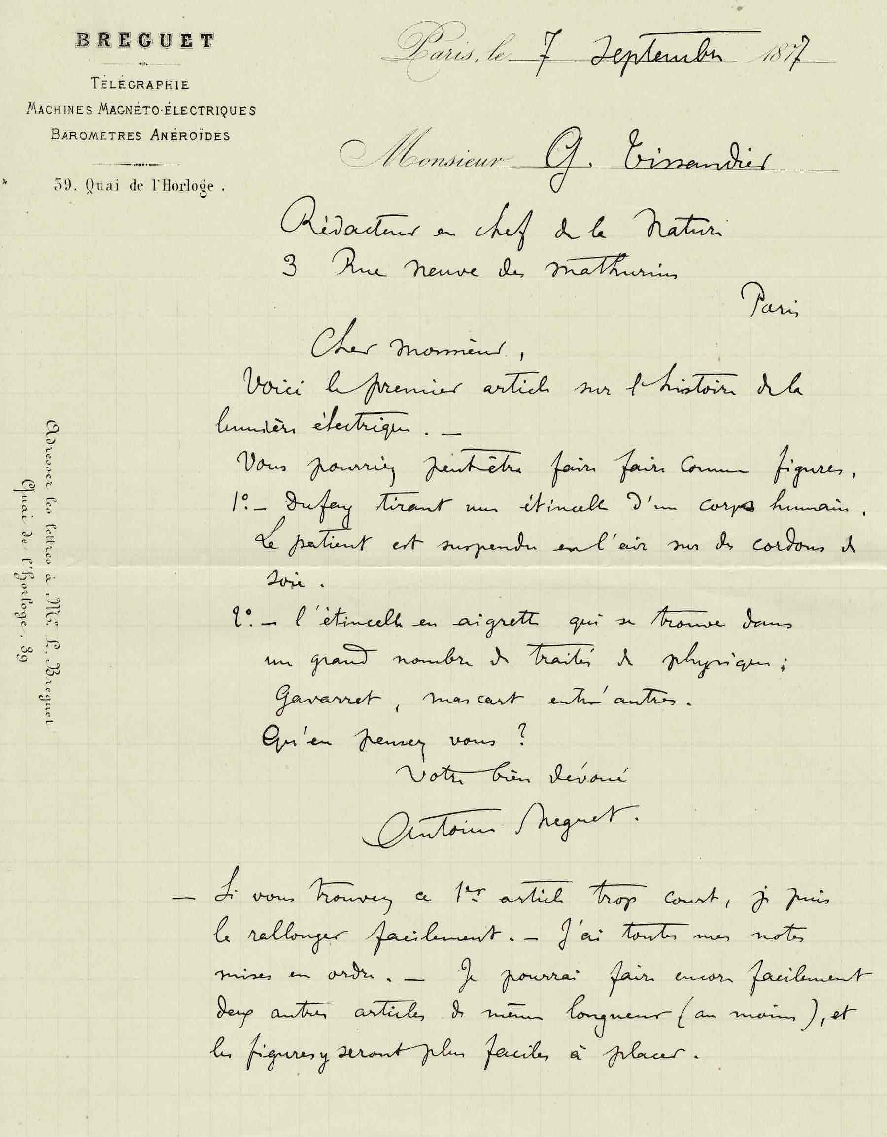Toujours en 1843, Louis Breguet mit au point, sur demande d'Arago et