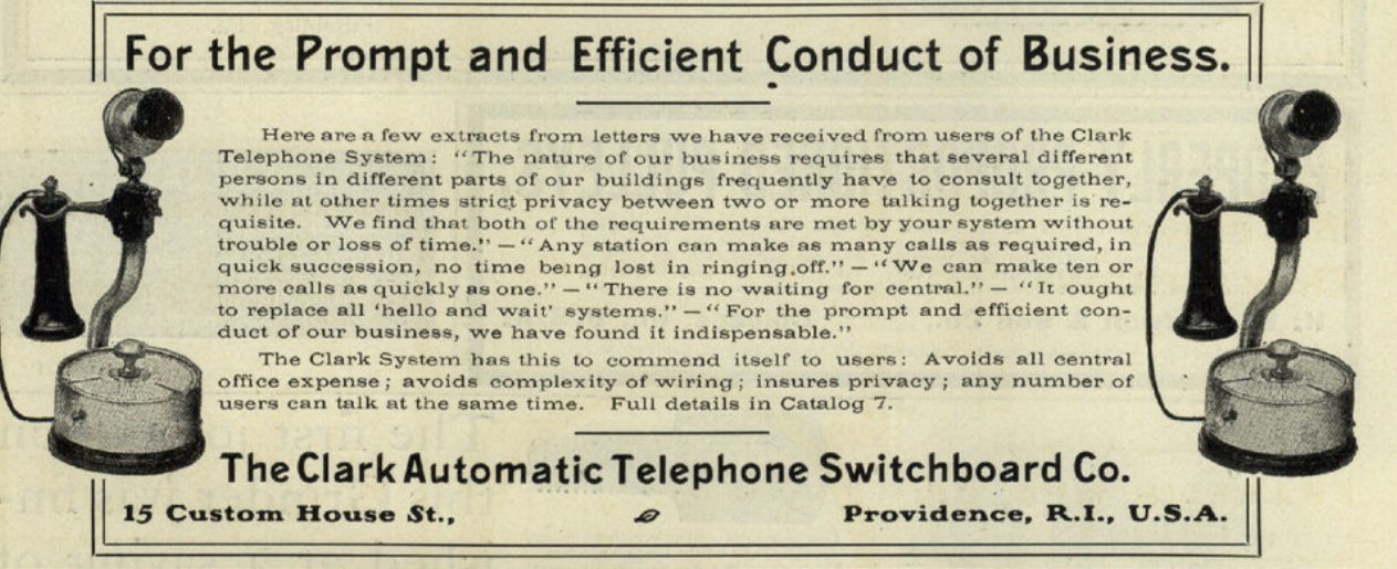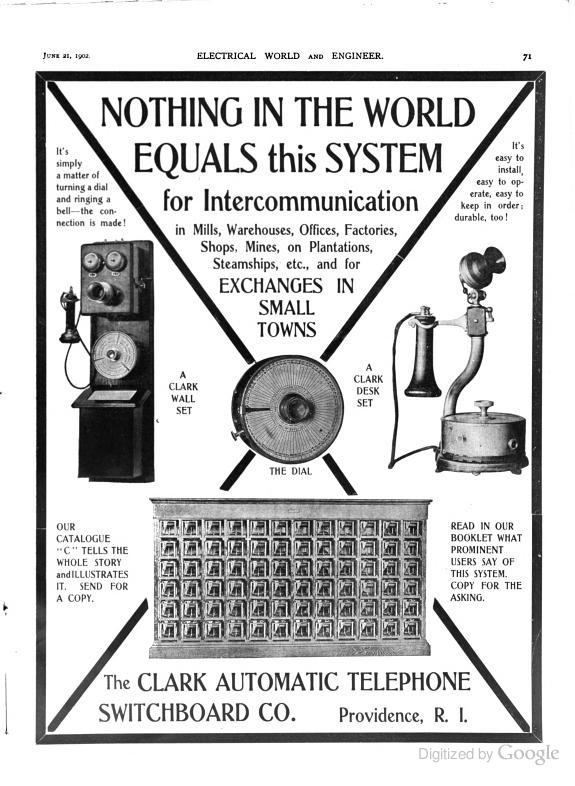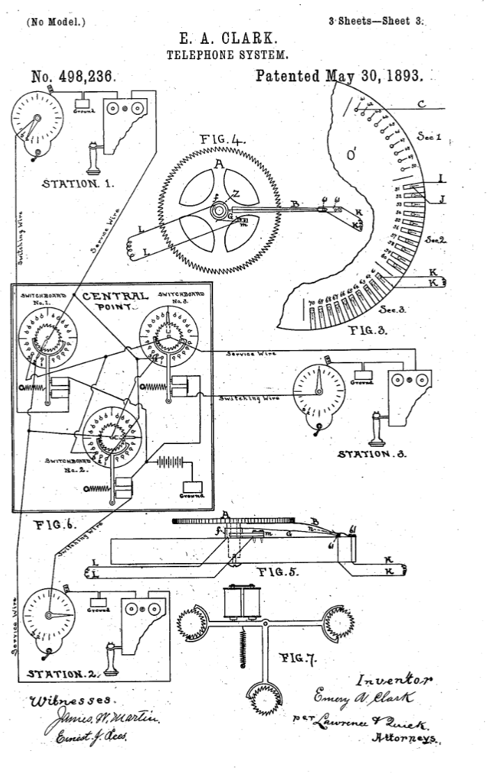 et bien plus tard le brevet E. H. CLARK v TELEPHONE EXCHANGE SYSTEM