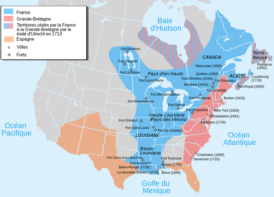 Traité dUtrech de 1713, la Nouvelle-France comprenait cinq