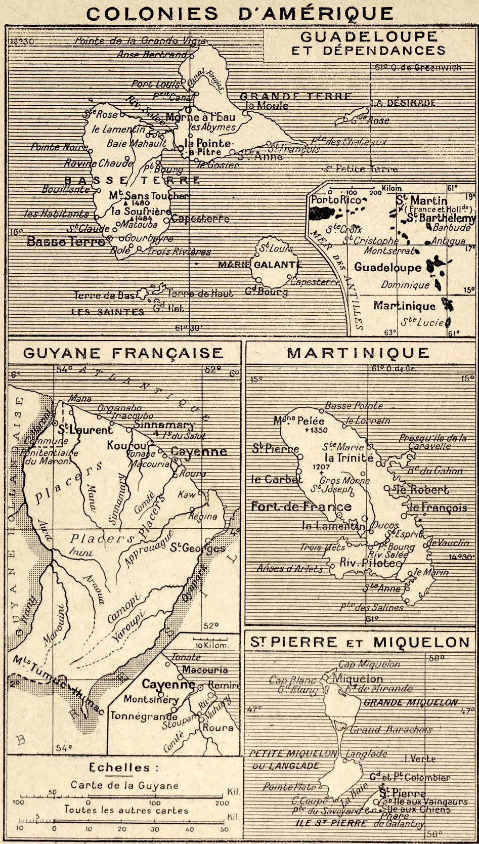 quelques îles des Antilles, les Mascareignes et des établissements