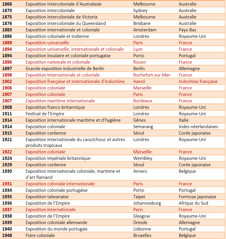 avaient été courants lors dexpositions coloniales