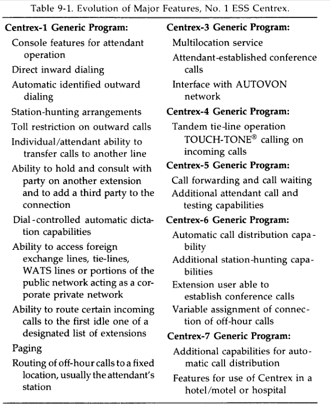 et de maintenance Centrex. Le service Centrex de l'ESS n °