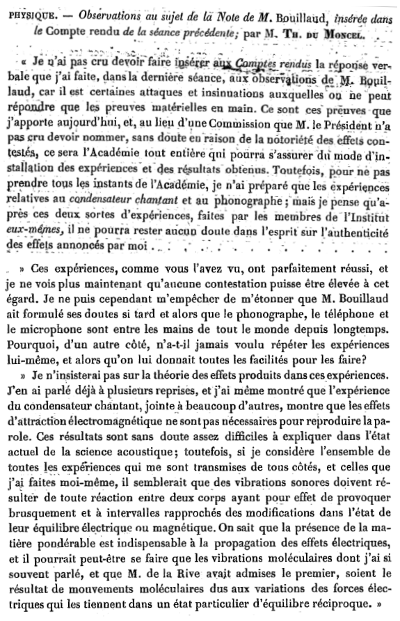 par M. Du Moncel, il met au point un Téléphone électrostatique