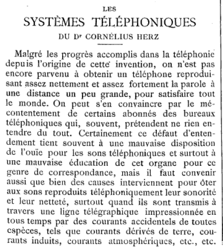 Dans le livre de premier ouvrage Français traitant du Téléphone