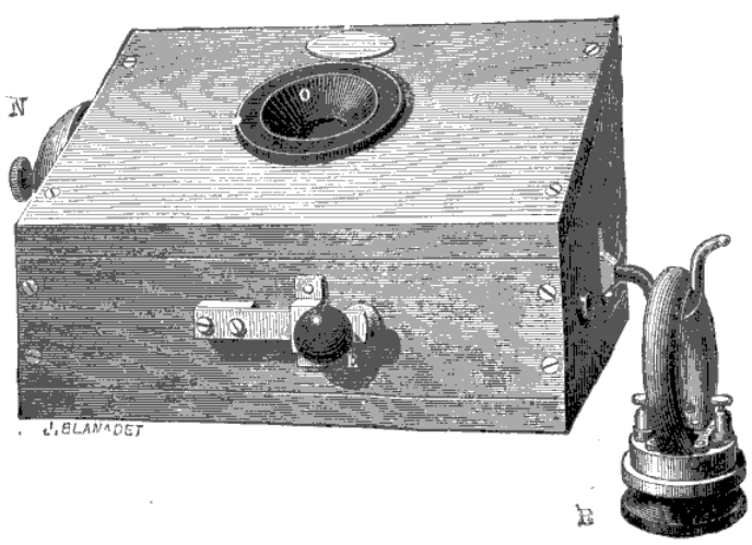 Avec un écouteur Ader,Vu dans La Nature de 1883 p97
