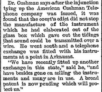 de nouveaux systèmes de la Cushman Telephone Company, un fabricant