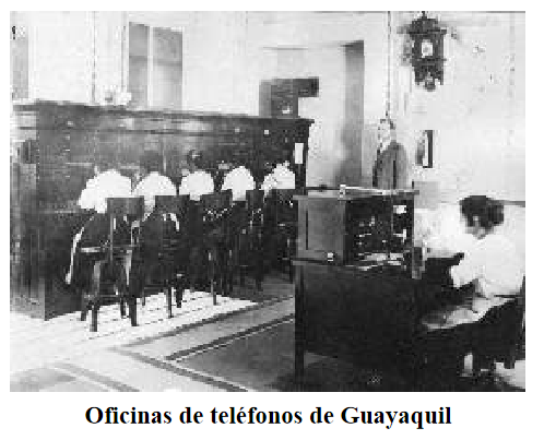 Guayaquil 1892 M. Mora Silva, représentant de la société "The Ecuador Telephone Company Limited" basée à Guayaquil, a demandé l'autorisation au Conseil municipal d'établir des téléphones dans la capitale Quito ; En 1894, il y avait alors 600 lignes