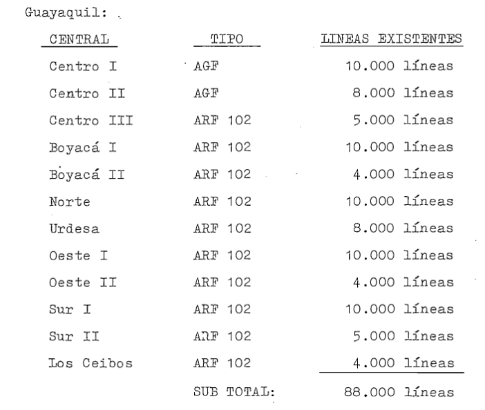 que Guayaquil disposait de deux centraux : l'un installé