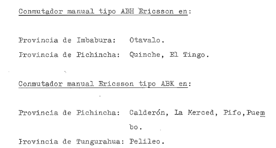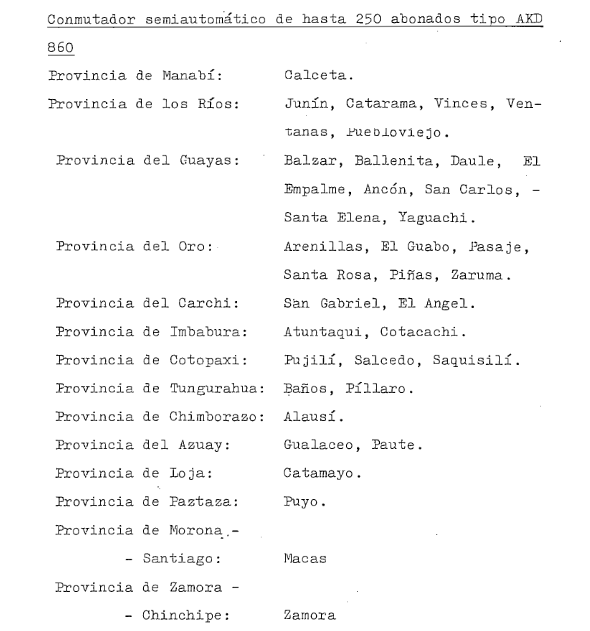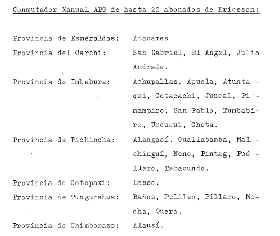 dans la province de Chimborazo. sommaire Commutateur Ericsson AKD 860 de 250 abonnés
