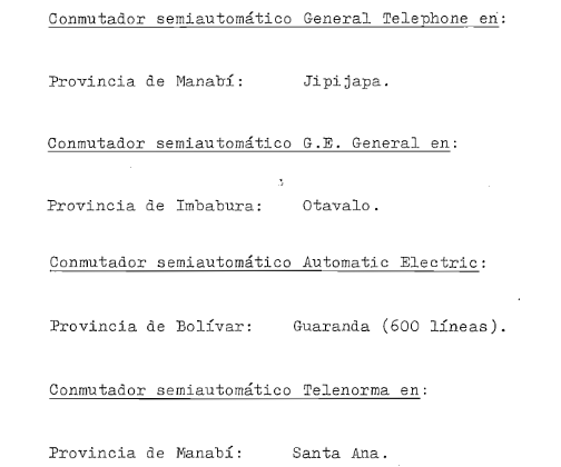 dans les villes de Quito et Guayaquil. 1952 Le premier annuaire téléphonique