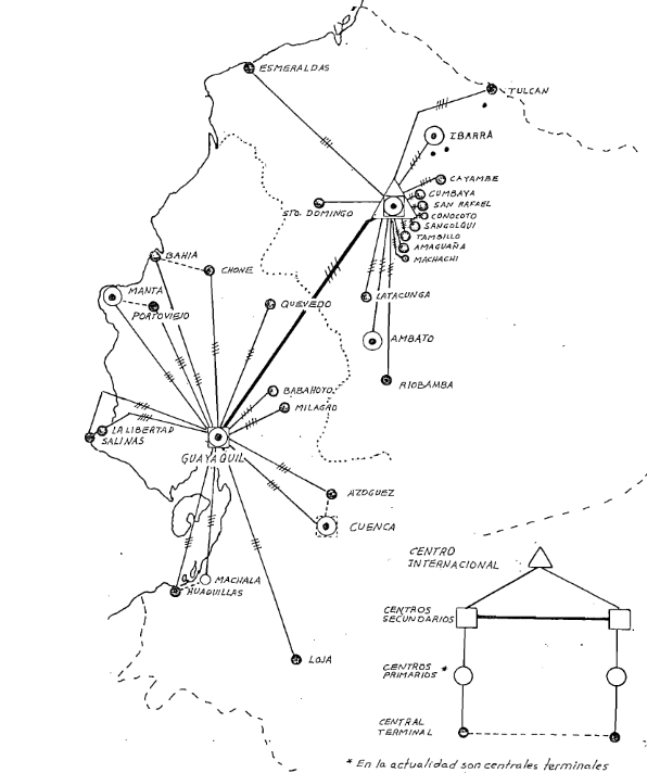 ne pouvait dépasser 70 kilomètres, 1930, Des centraux téléphoniques sont installés à Quito, Guayaquil et Cuenca. 1934 le pays comptait plus de 7 000 kilomètres