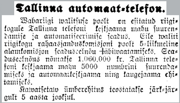 L'HISTOIRE DU TÉLÉPHONE EN ESTONIE COMMENCE EN 1877