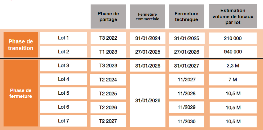 Dans son calendrier de fermeture, Orange distingue 2 phases :