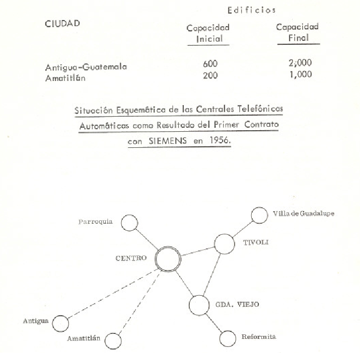 En 1881, l'utilisation du téléphone public a été officialisée par le lien existant de la ligne télégraphique physique entre la capitale "Guatemala" et la ville d'Antigua Guatemala, commençant le service public par l'État seulement cinq ans après la naissance du téléphone dans le monde. Le 23 septembre 1884 Un illustre homme d'affaires
