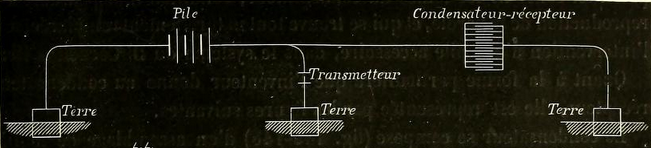 Le D r Cornélius Herz y parvint en interposant dans la ligne un condensateur et un diffuseur, sorte de paratonnerre à pointes, destiné à agir d'une façon analogue au condensateur.
