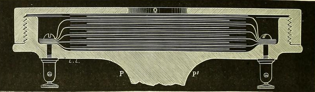 La pression de chaque contact pouvait être réglée avec soin par des moyens fort simples, et l'effet produit était amplifié par le nombre.