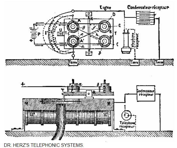 Dans l'article de Th Du Moncel, publié dans le "Scientific American" Supplement n ° 274, page 4364, l'auteur, après avoir décrit les systèmes téléphoniques de M. Herz, reporta à une autre occasion la description d'un système encore plus récent du même inventeur, car temps il n'a pas été protégé par brevet.