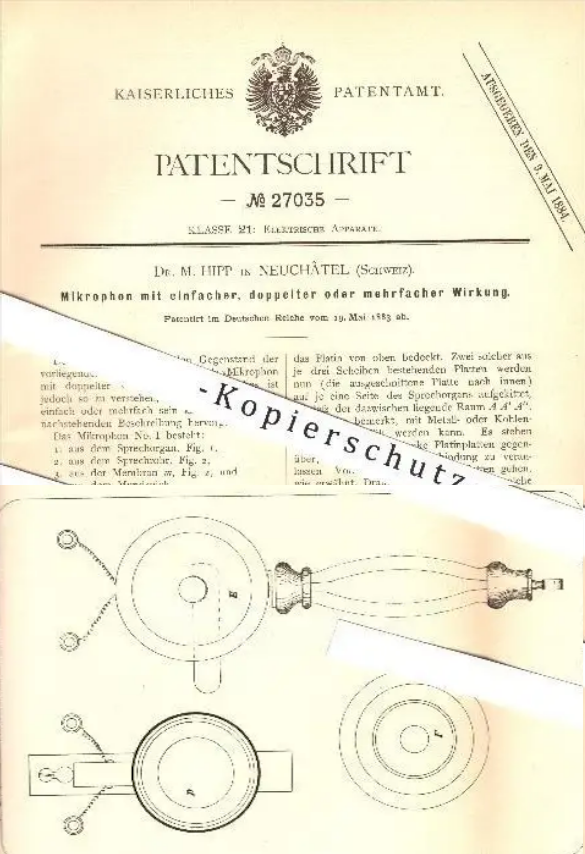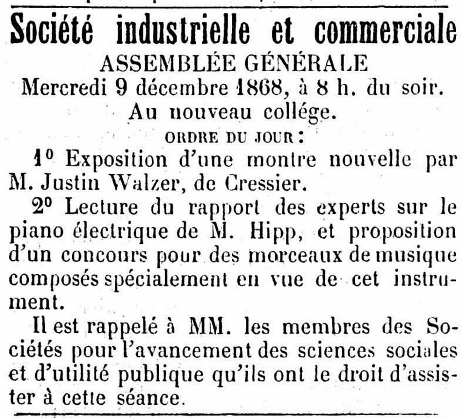 son invention. Ce n'est que neuf ans plus tard que Hipp présente
