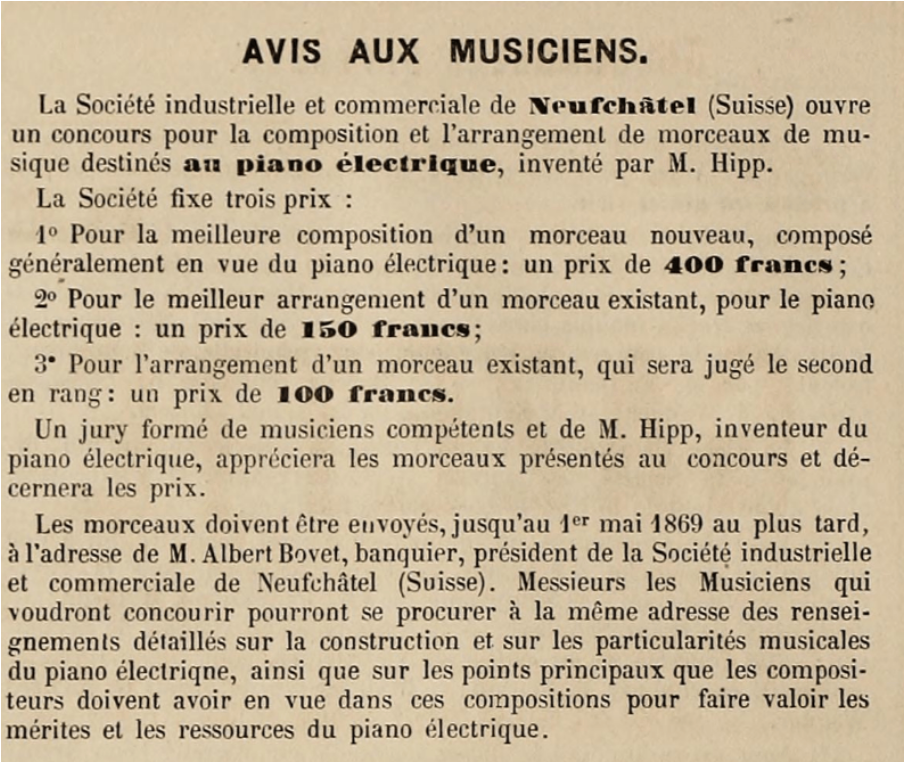un concours pour la meilleure composition musicale pour le nouvel instrument