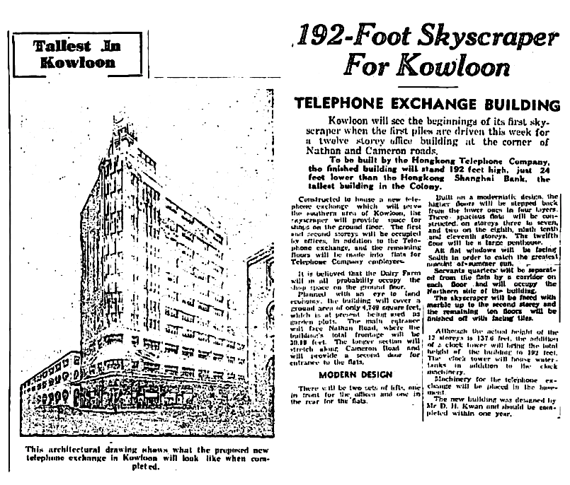 1933 The Hongkong Telephone Company, 1925 à 1933, article
