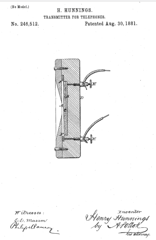 des brevets Bell Edison qu'elle détenait. Hunnings a comparu
