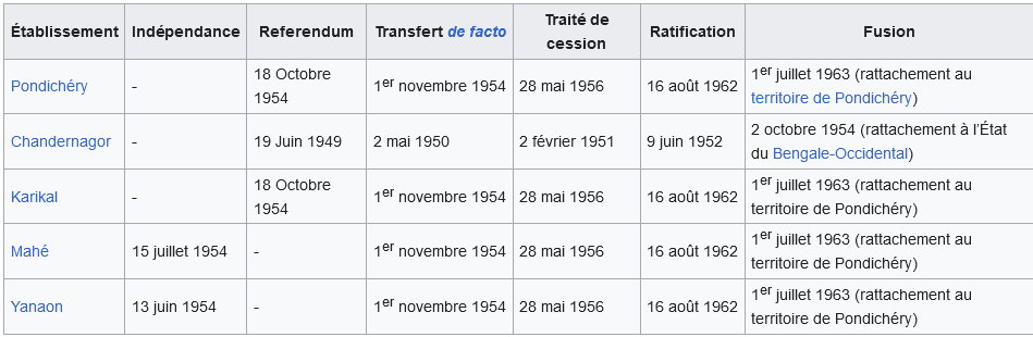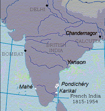 possessions coloniales françaises en Inde entre 1668 et 1954.