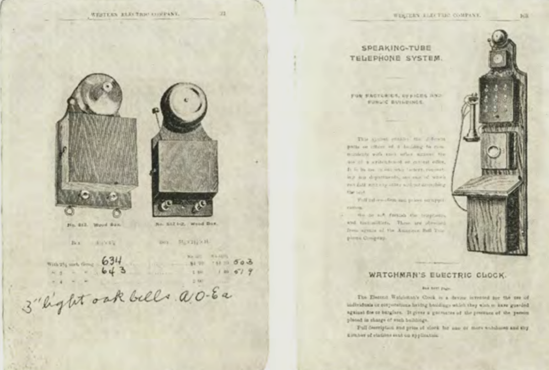 Voici la reproduction de deux pages d'un catalogue Western Electric,