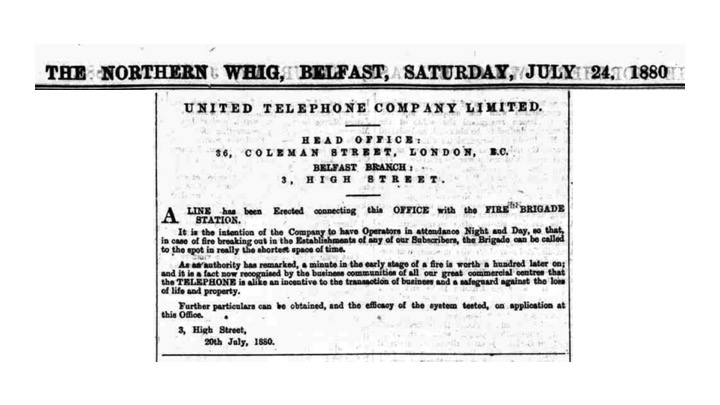 1880 le téléphone est aussi installé à Belfast