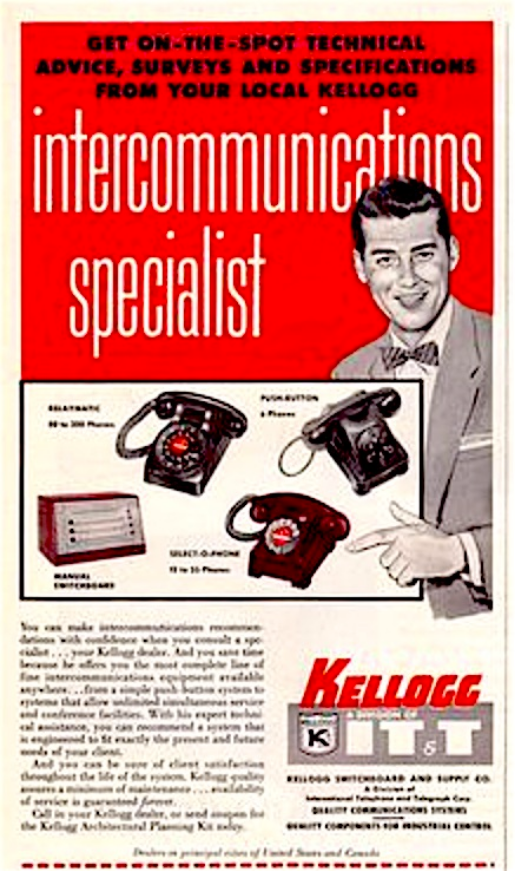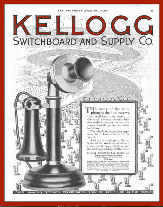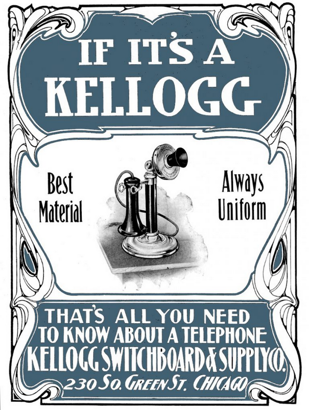 par la compagnie Bell. « Le principal point de supériorité revendiqué pour le nouveau standard Kellogg est qu'il est entièrement « central », supprimant entièrement les sous-stations et évitant ainsi la nécessité d'appeler « Main », « Sydney », etc. En 1897, Milo Kellogg fonde et devient