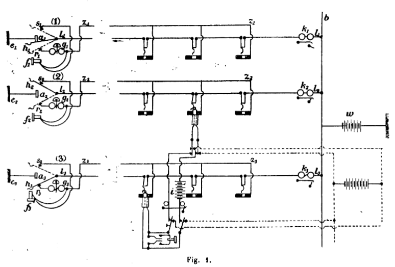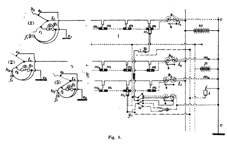commutateurs h , les téléphones f, les sonneries g et