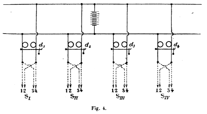 central. En A et C se trouvent des clefs Morse. En S est une sonnerie